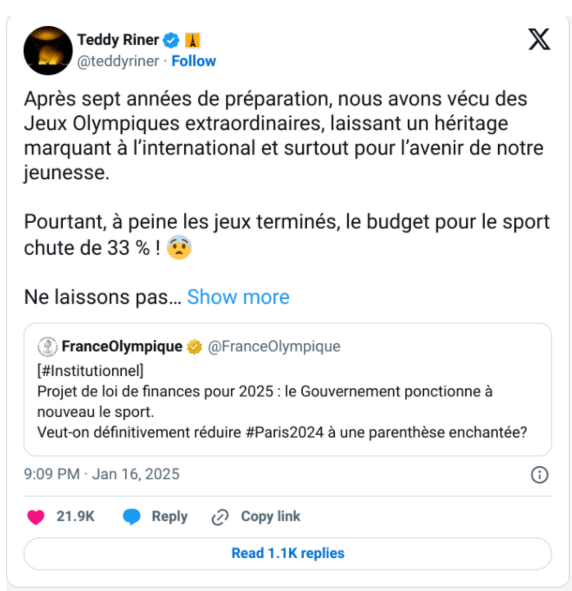 même que le sport en France était au sommet avec les JO de paris 2024 qui a mené